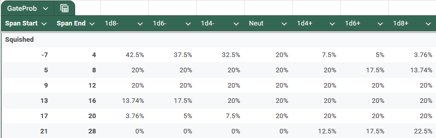 About as well as Stats + Circumstance did, which is good enough for me. There are two primary issues. (1) The jump from Neut to 1d4 is very impactful. This is because we're skipping the 1d2, so we jump from a +0 on the average to a +2.5 on the average. Additionally subsequent upgrades are less impactful. Going from 1d4 to 1d6 only provides a +1 to the average.